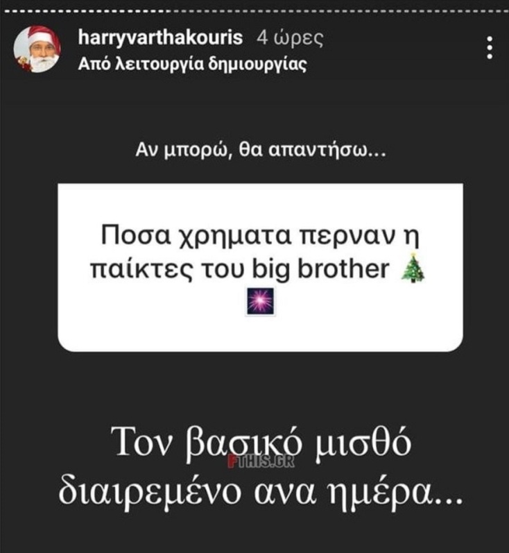 Ο Χάρης Βαρθακούρης απάντησε μέσω Instagram σε ερωτήσεις για το Big Brother και αποκάλυψε τα χρήματα που έπαιρναν οι παίκτες.