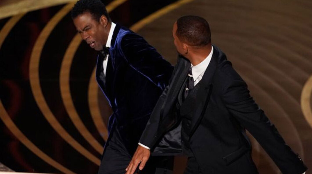 Ο Σμιθ ανέβηκε ξαφνικά στη σκηνή και χαστούκισε τον Ροκ υπό το άναυδο βλέμμα διασημοτήτων και θεατών.