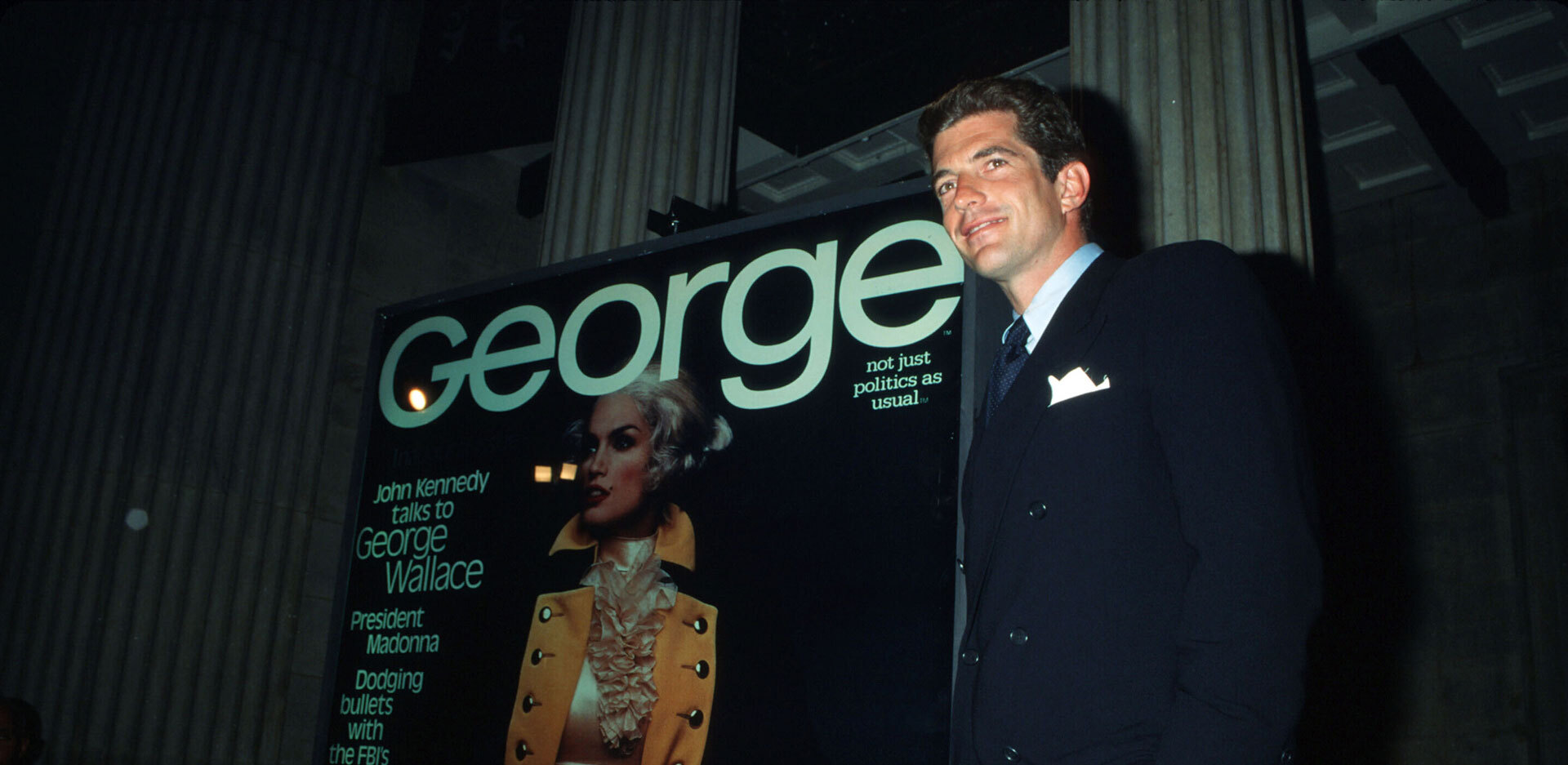 Το 1995, ο JFK Jr. παρουσίασε στον κόσμο ένα εγχείρημα εγγενώς ανατρεπτικό και σε πλήρη αντίθεση με τις συμβατικές προσδοκίες: το περιοδικό George. Εκείνη την περίοδο, οι ειδικοί στον χώρο των εκδόσεων έλεγαν αστειευόμενοι ότι μπορείς να ξεκινήσεις περιοδικό για οτιδήποτε εκτός από τη θρησκεία και την πολιτική. Εκείνος επιχείρησε κάτι ακόμα πιο εκκεντρικό – να συνδέσει την πολιτική με την ποπ κουλτούρα, δύο έννοιες οι οποίες παρέμεναν σε ξεχωριστούς και συχνά ασύμβατους κόσμους. Το εξώφυλλο του πρώτου τεύχους, με τη Σίντι Κρόφορντ ντυμένη ως Τζορτζ Ουάσινγκτον (από τον οποίο πήρε και το όνομά του το περιοδικό), εξέφραζε την κεντρική ιδέα που ήταν να αποκαλύψει το ανθρώπινο πρόσωπο των πολιτικών προσώπων αλλά και το πρώτο βήμα προς μια μεγαλύτερη επιδίωξη: την επανεφεύρεση της πολιτικής επικοινωνίας. Για να τοποθετήσουμε το εγχείρημα αυτό χωροχρονικά – αρκεί να σκεφτούμε ότι τριάντα χρόνια μετά, ζούμε ακόμη την αρχή μιας νέας ψηφιακής εποχής η οποία επιδρά και συνδιαμορφώνει την πολιτική.