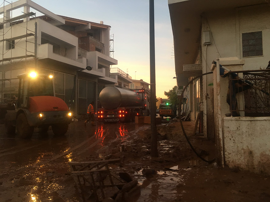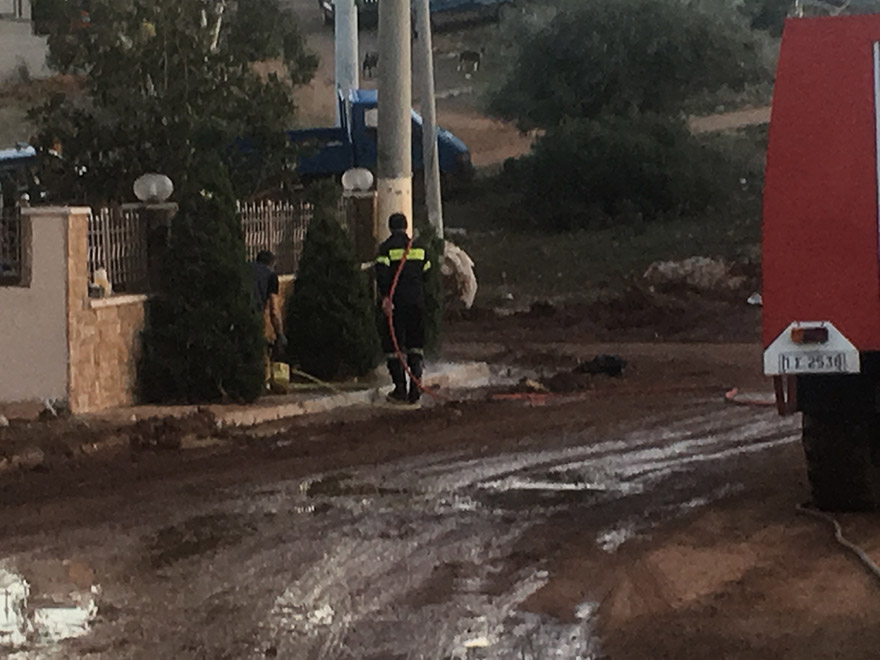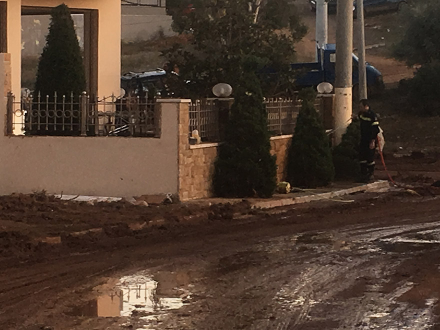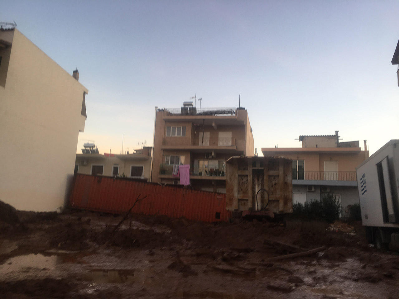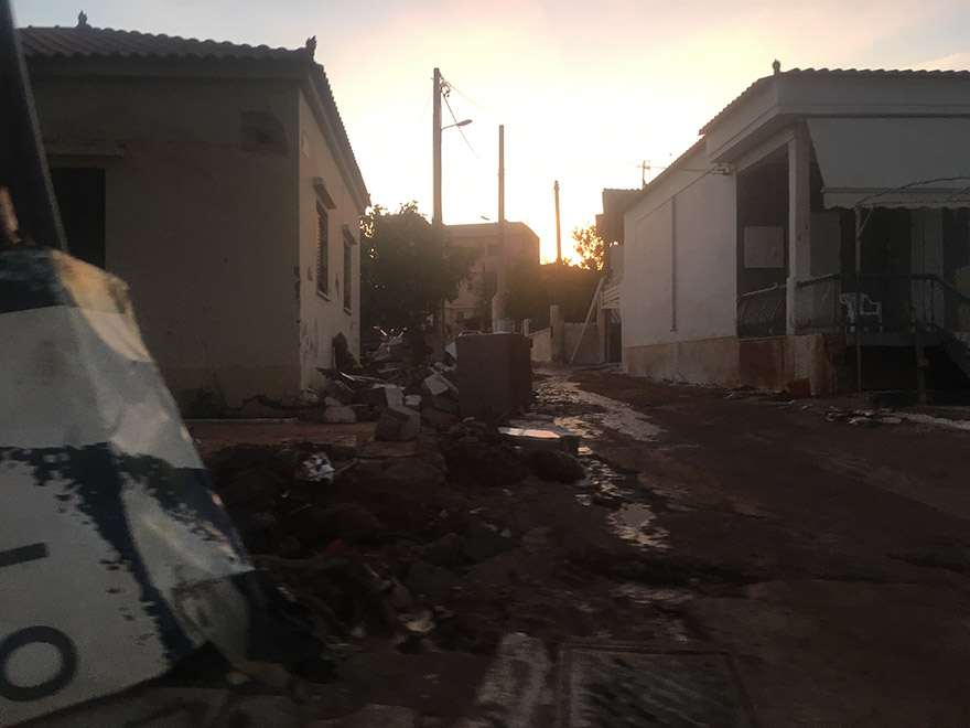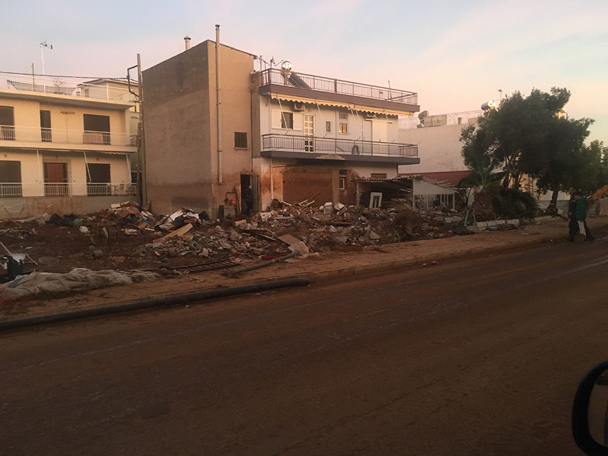 Συνέχισα να περπατάω στη Μάνδρα, όπου όλοι οι δρόμοι μου φαίνονταν ίδιοι. Μόνο λάσπη. Στην περιοχή όπου ήταν το αμαξοστάσιο, ακριβώς πάνω σε ρέμα που μπάζωσαν οι υπηρεσίες του δήμου ακριβώς γι αυτό τον σκοπό, ένας εκσκαφέας σκάβει αδιάκοπα. Εκεί και ένα πυροσβεστικό όχημα και περιπολικά. Οι τσακισμένοι από την κούραση πυροσβέστες, καταλάβαινες ότι ψάχνουν τους τελευταίους αγνοούμενους, που ήταν σαφές ότι θα ανασύρονταν νεκροί.