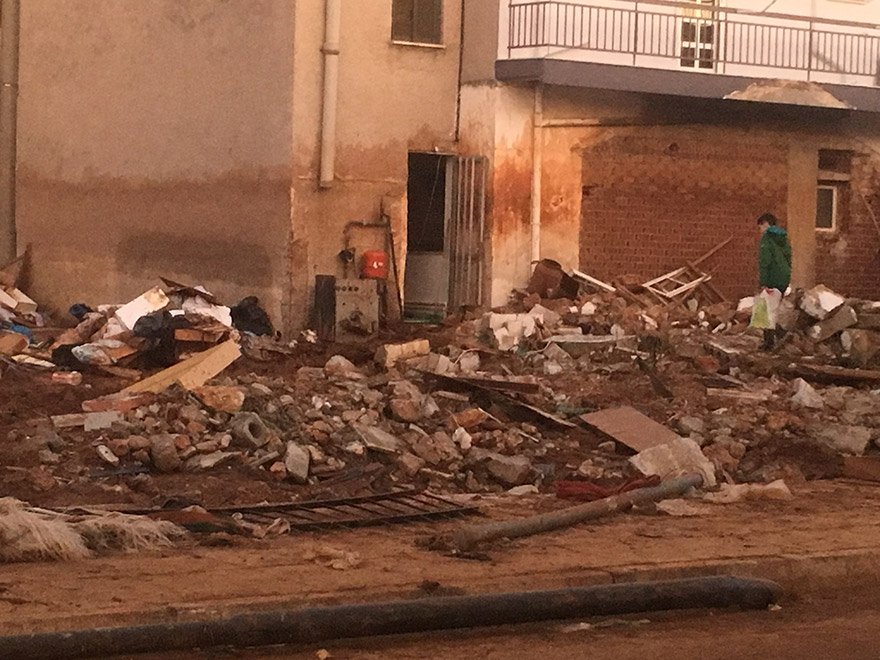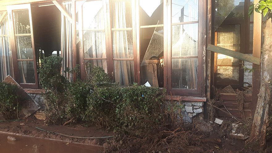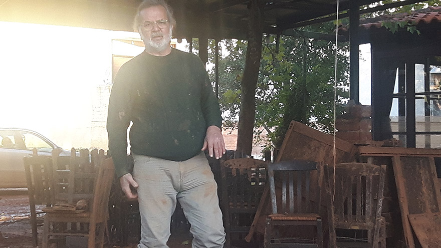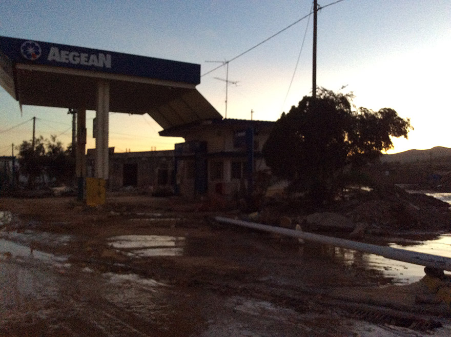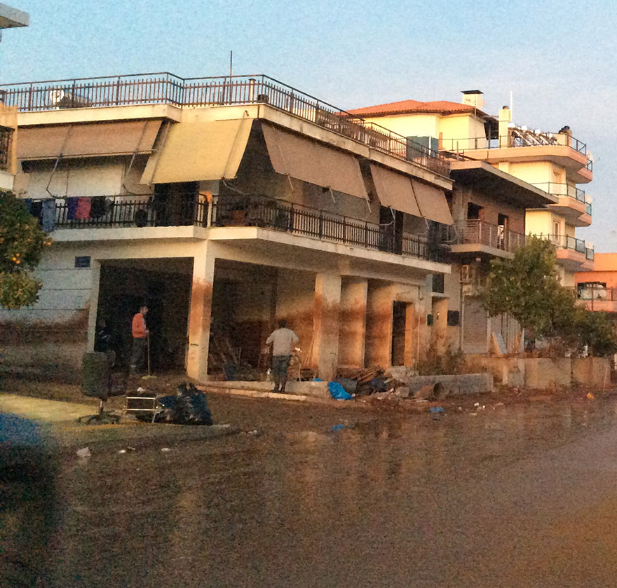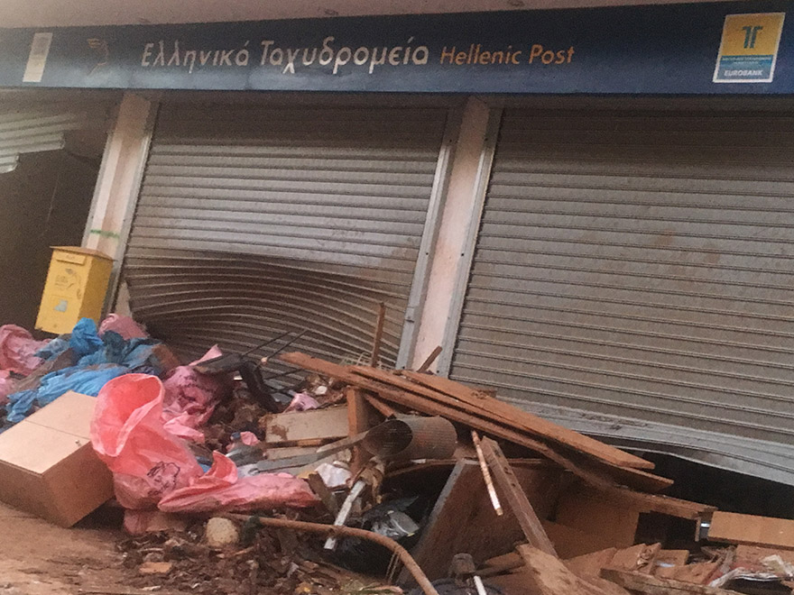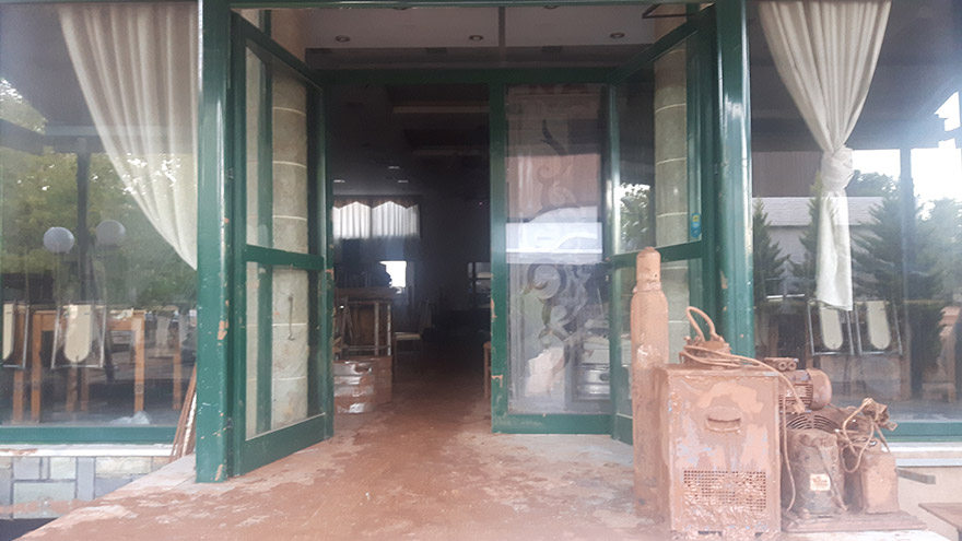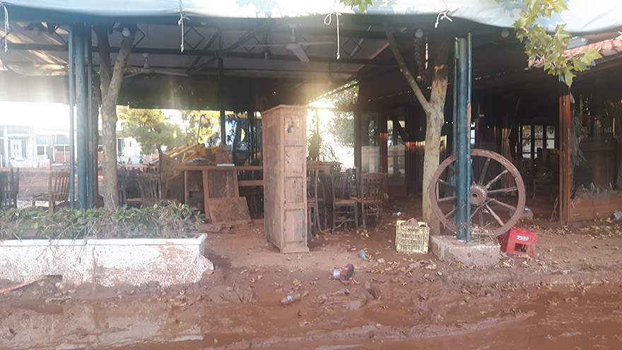 Περνώντας από ένα κτίριο, θεωρώ ότι αυτό ήταν έτσι κι αλλιώς μισογκρεμισμένο, ακατοίκητο, δεν το φωτογραφίζω. Είμαι σίγουρη ότι δεν καταστράφηκε από τη φονική πλημμύρα. Τότε με πλησιάζει ευγενικά ο Θωμάς. «Πώς σου φαίνεται το μαγαζί μου»; Ρωτάει με να πικρό χαμόγελο. Κι όμως μέχρι πριν από μερικές ημέρες εκεί ήταν η ταβέρνα του. Την έλεγαν ο «Γλάρος».