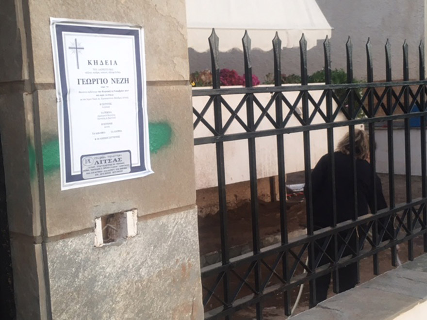 Στη Μάνδρα, το κηδειόσημο έξω από το σπίτι του Γιώργου Νέζη και η ημερομηνία της ταφής, δεν αφήνουν περιθώρια για παρερμηνείες. Μια μαυροντυμένη γυναίκα βγάζει υπομονετικά τη λάσπη από την αυλή. Σχεδόν δεν συνειδητοποίησα ότι στάθηκα έξω από την πόρτα της, κοιτάζοντάς την. Όταν κάποιος έχει μόλις θάψει έναν δικό του άνθρωπο, δεν του κάνεις ερωτήσεις, δεν θέλεις να σου πει λεπτομέρειες για τι τελευταίες του στιγμές. Θέλεις και πρέπει να σεβαστείς το πένθος του.