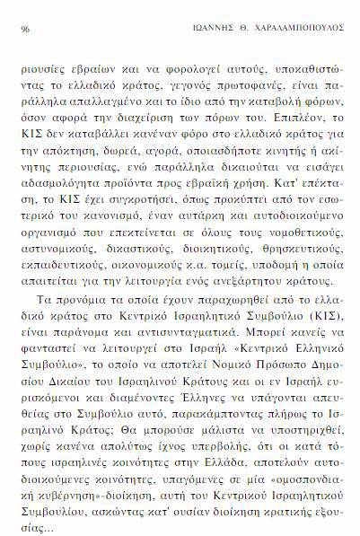 «Το Κεντρικό Ισραηλιτικό Συμβούλιο (Ελλάδος) (ΚΙΣ) δικαιούται να εισπράττει φόρους, για δική του χρήση, από τους Εβραίους που διαμένουν στην Ελλάδα, αντί του ελληνικού κράτους»! Με απλά λόγια, κανένας Εβραίος δεν πληρώνει φόρο στο ελληνικό δημόσιο, αλλά μόνο στο Κ.Ι.Σ.!
