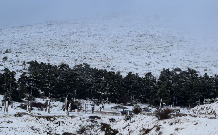 Το πρώτο χιόνι έπεσε και το έστρωσε για τα καλά στην Πάρνηθα δημιουργώντας ένα σκηνικό στο καταφύγιο Μπάφι, που ταιριάζει απόλυτα με την εποχή: σχεδόν Χριστουγεννιάτικο.