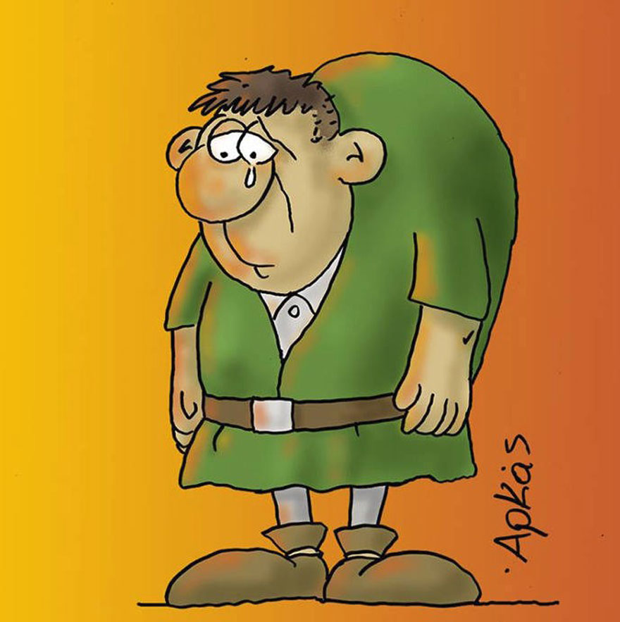 Στο σκίτσο βλέπουμε τον Κουασιμόδο, τον περίφημο καμπούρη που δημιούργησε ο Βίκτωρ Ουγκώ και χτυπούσε τις καμπάνες του καθεδρικού ναού στην «Παναγία των Παρισίων», να δακρύζει.