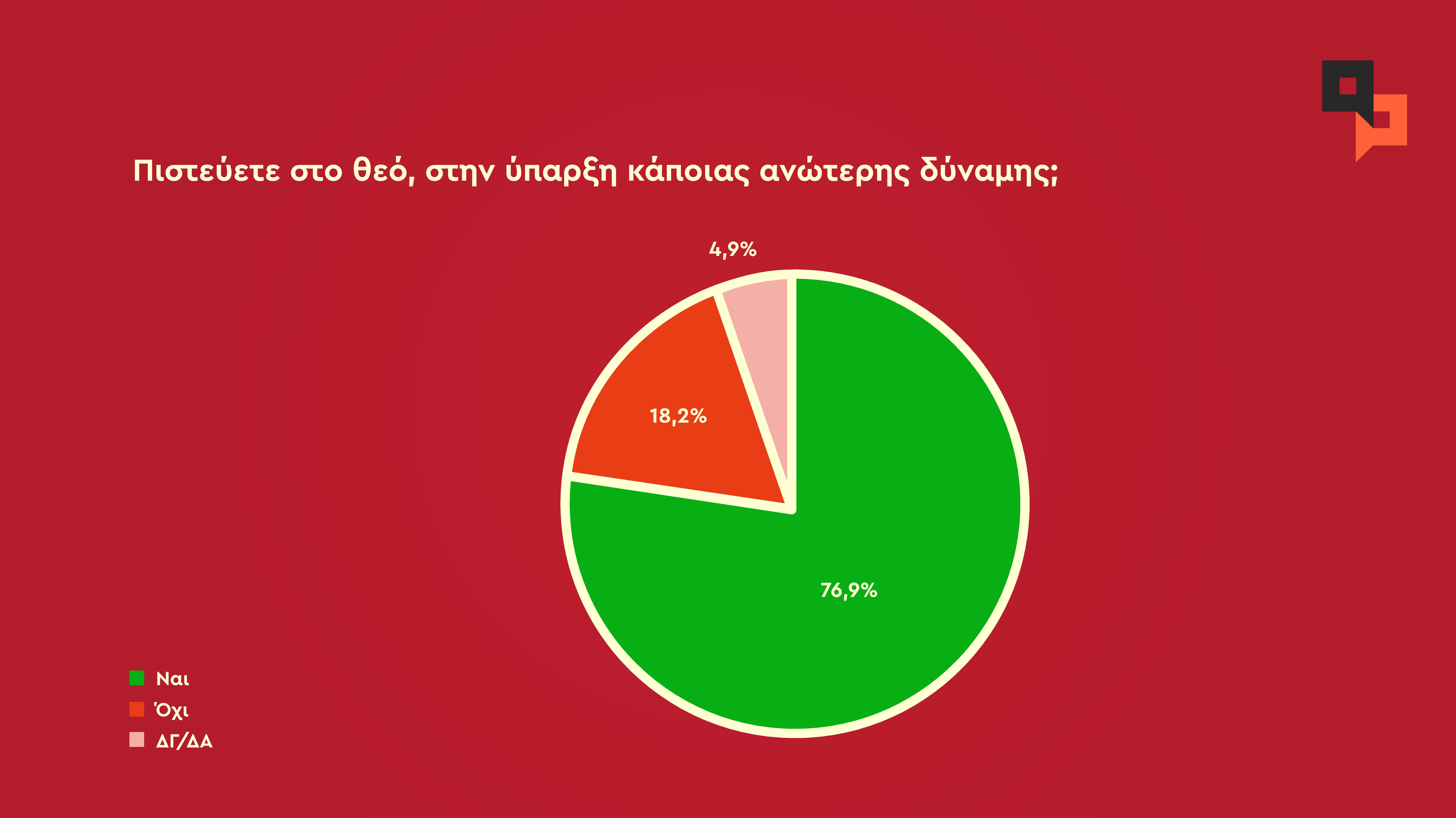Το 76,9% των ερωτώμενων πιστεύει στον Θεό.