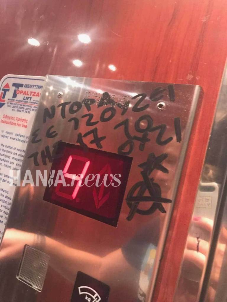 Άγνωστος ή άγνωστοι δράστες πήγαν χθες το βράδυ, γύρω στις 10.30 σύμφωνα με πληροφορίες, στο κτίριο όπου στεγάζεται το πολιτικό της γραφείο στα Χανιά κι έγραψαν απειλητικά μηνύματα εντός του ασανσέρ.