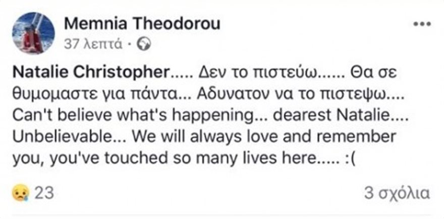 Στο μεταξύ μέσα από τα κοινωνικά δίκτυα χρήστες και φίλοι αποχαιρέτησαν την αστροφυσικό, ενώ και ο προσωπικός της λογαριασμός στο Facebook κατακλύστηκε από μηνύματα θλίψης.
