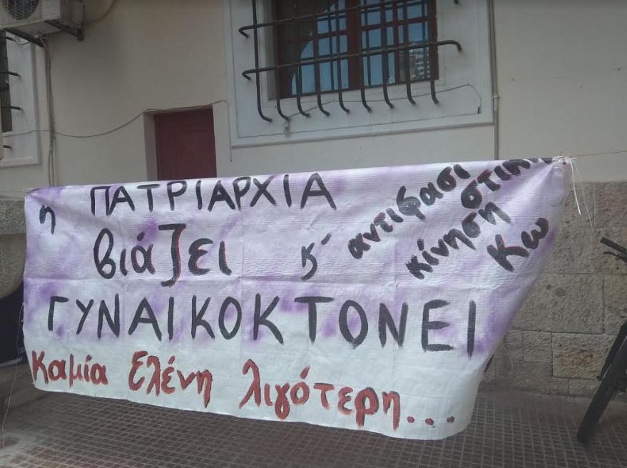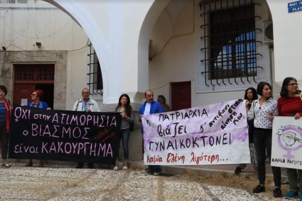 Έξω από το δικαστήριο βρέθηκαν για να διαμαρτυρηθούν μέλη του Πανελλαδικού Σωματείου Γυναικείων Δικαιωμάτων «Το Μωβ», που έφτασαν το Σαββατοκύριακο από την Αθήνα καθώς και μέλη της αντιφασιστικής κίνησης Κω.
