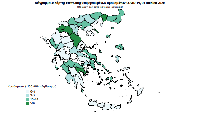 Στη δημοσιότητα δόθηκαν την Τετάρτη 1η Ιουλίου 2020 οι περιοχές στην Ελλάδα που βρέθηκαν τα 23 νέα κρούσματα κορωνοϊού.