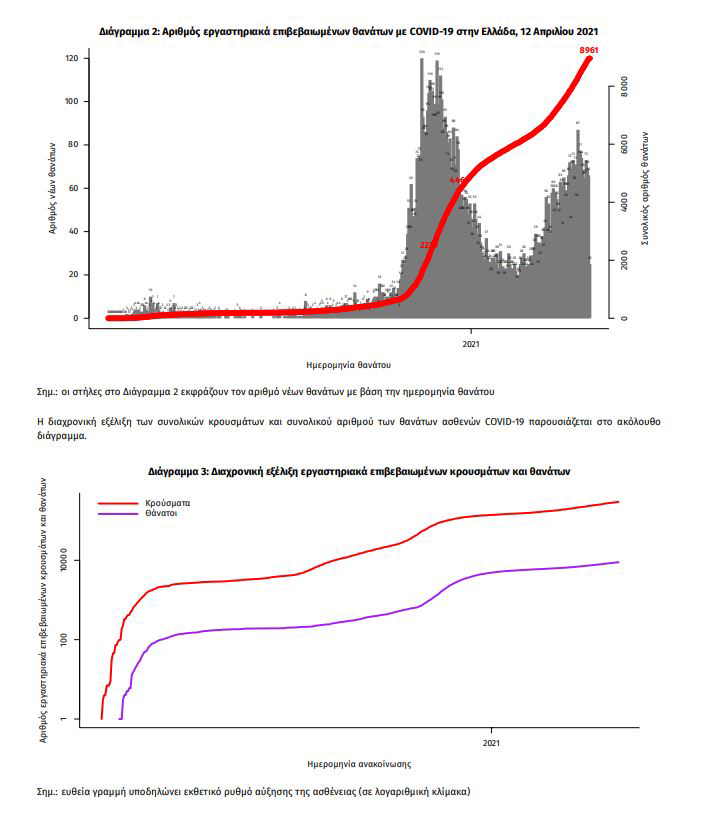 Οι νέοι θάνατοι ασθενών με COVID-19 είναι 76, ενώ από την έναρξη της επιδημίας έχουν καταγραφεί συνολικά 8.961 θάνατοι. Το 95.6% είχε υποκείμενο νόσημα ή/και ηλικία 70 ετών και άνω.