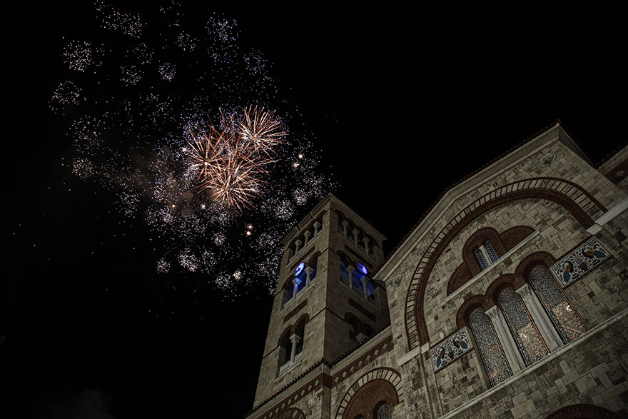 Μόλις ακούστηκε το «Χριστός Ανέστη» ο ουρανός γέμισε πυροτεχνήματα και βεγγαλικά. Όπως συνέβη και όλη την υπόλοιπη Μεγάλη Εβδομάδα έτσι και το Μεγάλο Σάββατο ήταν σε ισχύ συγκεκριμένα υγειονομικά μέτρα στις εκκλησίες κατά της διασποράς του κορωνοϊού. Μεταξύ αυτών ήταν τα υποχρεωτικά self test για ιερείς, νεωκόρους, ιεροψάλτες και λοιπό προσωπικό, που βρισκόταν εντός του ναού και η διπλή μάσκα για τους πιστούς σε όλους τους χώρους.