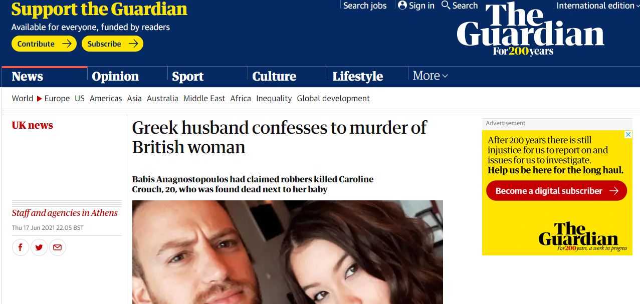 Από εχθές, βρετανικά και διεθνή ΜΜΕ κατέγραφαν τις εξελίξεις στην υπόθεση δολοφονίας της 20χρονης Καρολάιν. Σήμερα, οι ιστοσελίδες έχουν πρώτη είδηση την ομολογία του 32χρονου πιλότου και αναφέρονται σε όσα είπε στις αρχές περί ληστείας, θέλοντας να καλύψει το στυγερό έγκλημα.