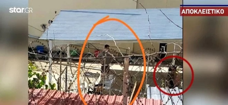 Στη φωτογραφία που παρουσίασε ο τηλεοπτικός σταθμός, φαίνεται ο συζυγοκτόνος πίσω από τα συρματοπλέγματα του Κορυδαλλού, σε έναν από τους πρώτους προαυλισμούς του στην ΣΤ’ πτέρυγα των φυλακών.