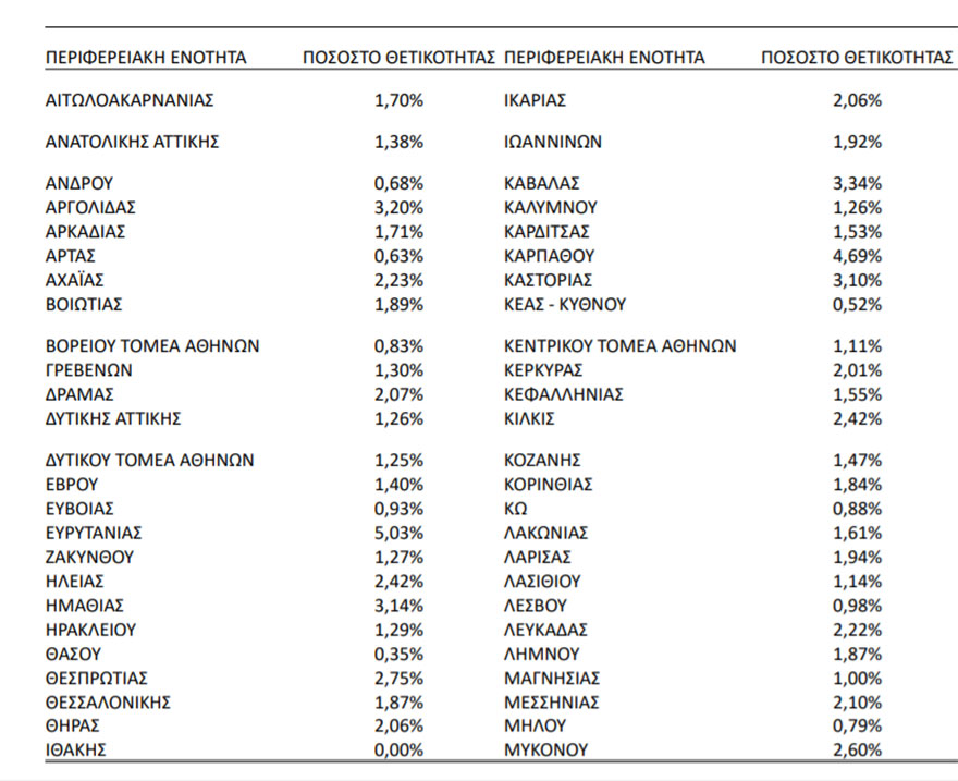 Δείκτης θετικότητας - Κορωνοϊός: Οι 6 περιοχές που ξεπερνά το 3%