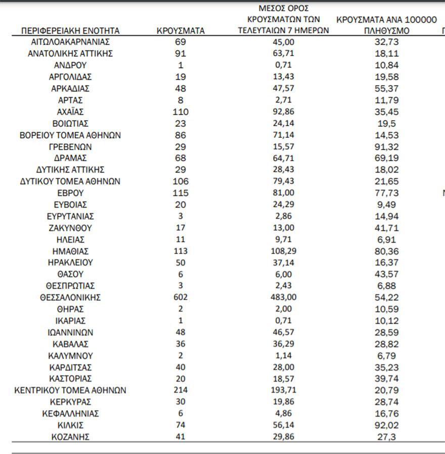 - Πειραιάς: 97 κρούσματα.