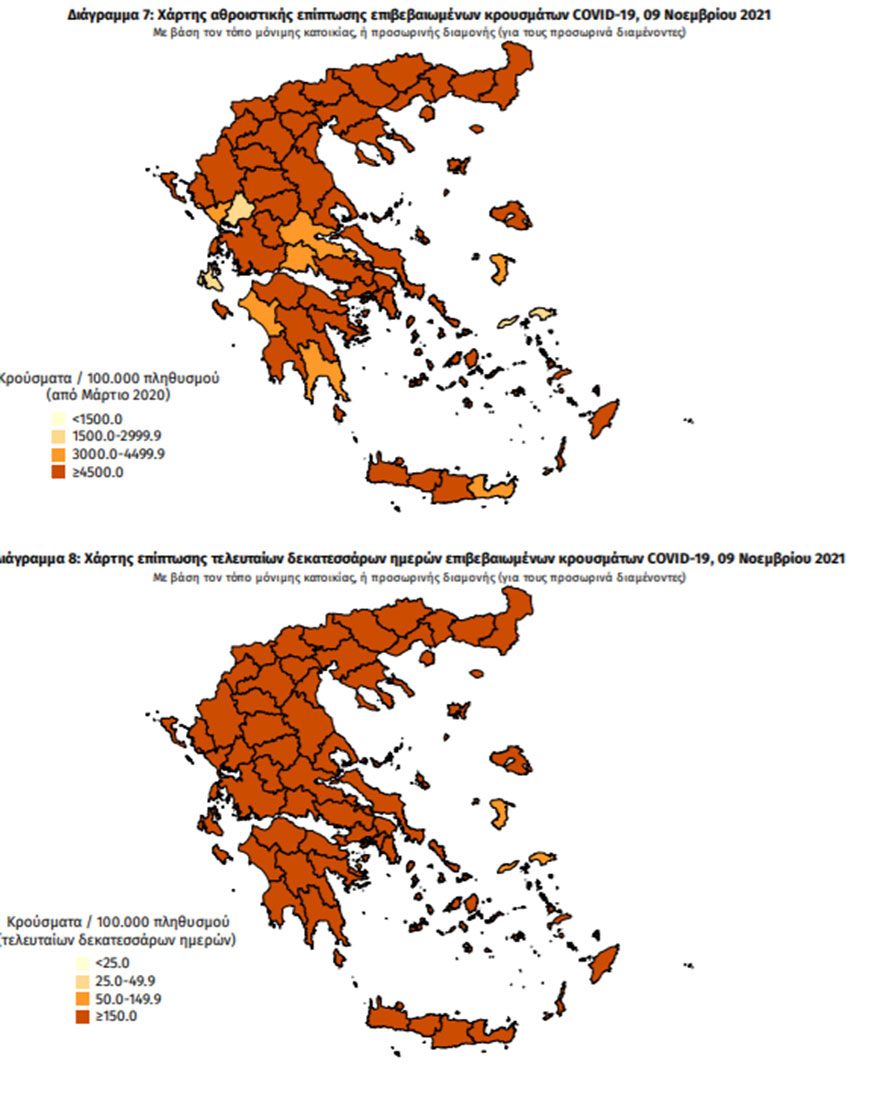 Τα κρούσματα σήμερα Τρίτη 9 Νοεμβρίου 2021, οι νέοι θάνατοι και οι διασωληνωμένοι στις ΜΕΘ, στην ανακοίνωση του ΕΟΔΥ για τον κορωνοϊό.