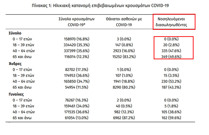» Οι νέοι θάνατοι ασθενών με COVID-19 είναι 89, ενώ από την έναρξη της επιδημίας έχουν καταγραφεί συνολικά 18.325 θάνατοι. Το 95.4% είχε υποκείμενο νόσημα ή/και ηλικία 70 ετών και άνω.