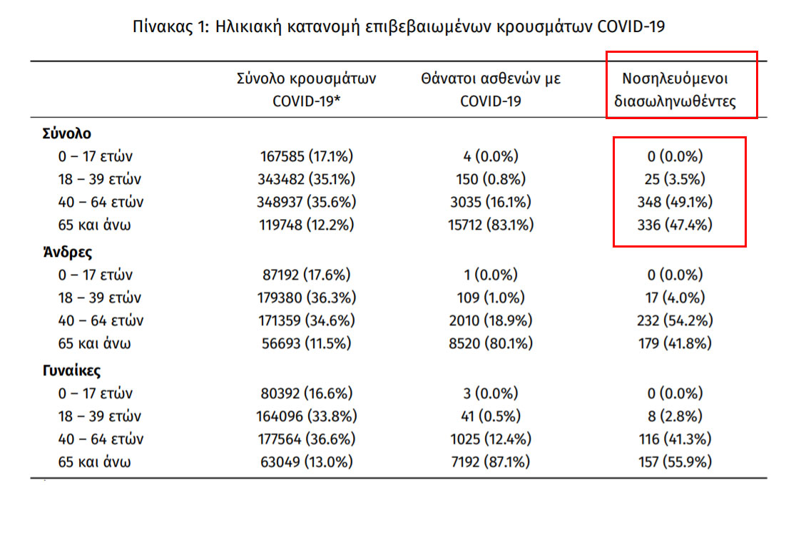 » Η διάμεση ηλικία των κρουσμάτων είναι 38 έτη (εύρος 0.2 έως 106 έτη), ενώ η διάμεση ηλικία των θανόντων είναι 78 έτη (εύρος 0.2 έως 106 έτη)» αναφέρει η ανακοίνωση του ΕΟΔΥ για τα κρούσματα σήμερα Τετάρτη 8 Δεκεμβρίου 2021, τους θανάτους και τους διασωληνωμένους στις ΜΕΘ.