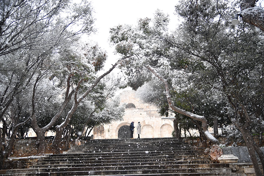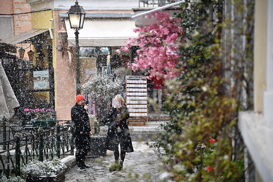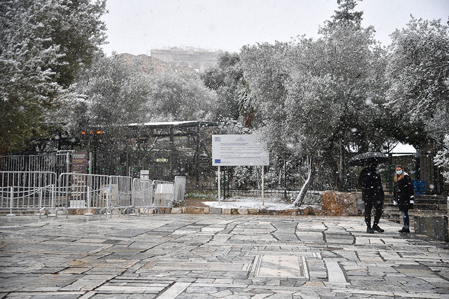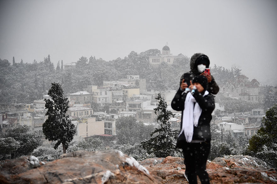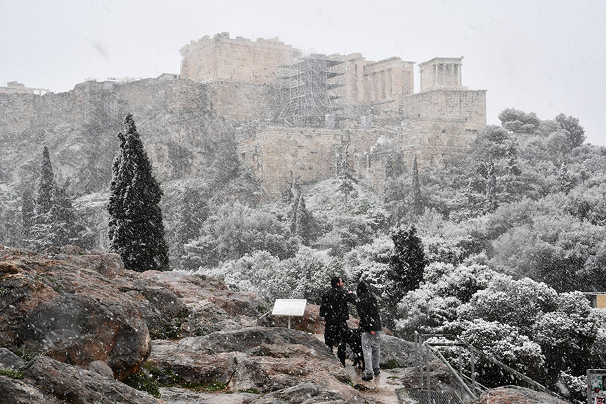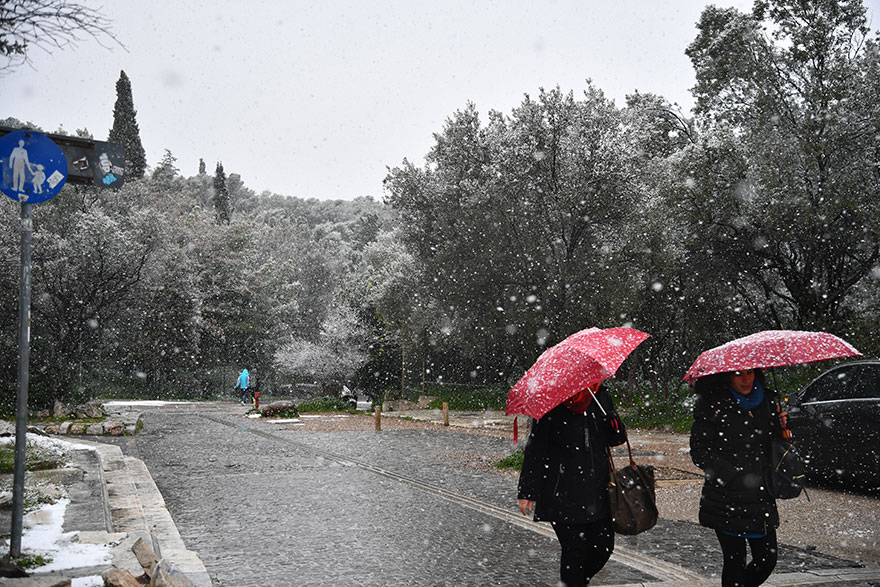 Στην Ακρόπολη χιόνισε, με κατοίκους να βγαίνουν από τα σπίτια τους και να ανεβαίνουν τη Διονυσίου Αρεοπαγίτου για να βγάλουν φωτογραφίες με τα χιόνια. Στην πλατεία Συντάγματος οι Εύζωνες στο Μνημείο του Άγνωστου Στρατιώτη φόρεσαν κάπες για το κρύο. Ακολουθούν φωτογραφίες για τα χιόνια στο κέντρο της Αθήνας.