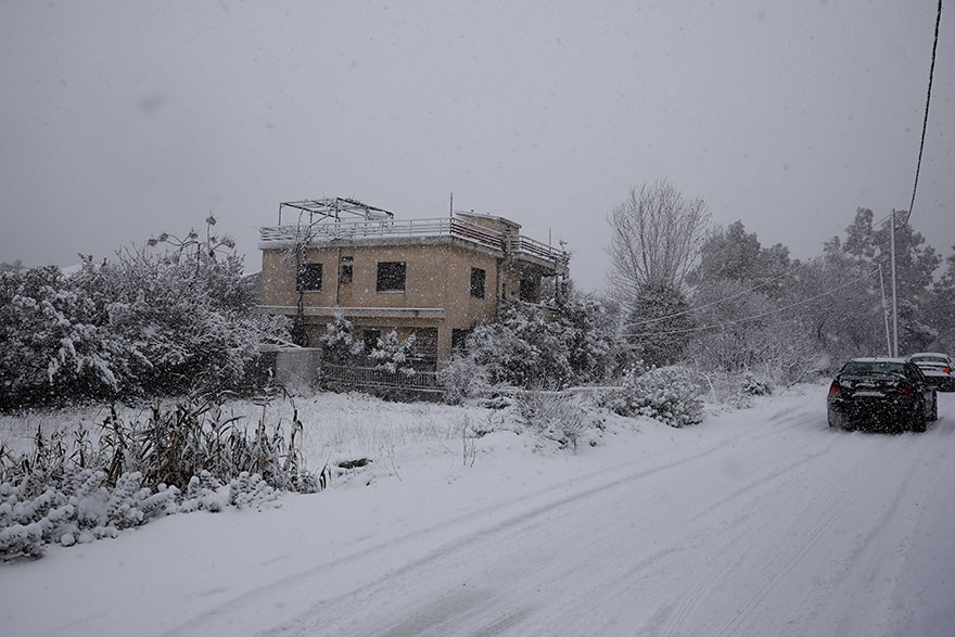 Λευκό τοπίο σε Πανόρμου, Ψυχικό, Αγία Παρασκευή και Αχαρνές