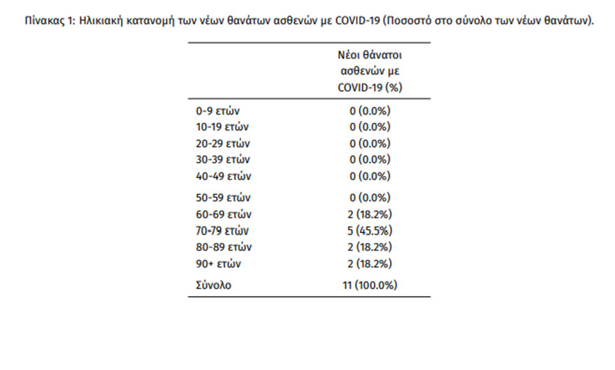 Οι νέοι θάνατοι ασθενών με COVID-19 είναι 11, ενώ από την έναρξη της επιδημίας έχουν καταγραφεί συνολικά 29.725 θάνατοι. Το 95.6% είχε υποκείμενο νόσημα ή/και ηλικία 70 ετών και άνω.