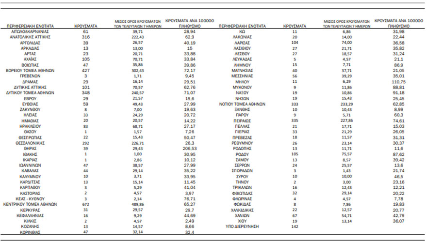 - Κεντρικός Τομέας Αθηνών: 672 κρούσματα