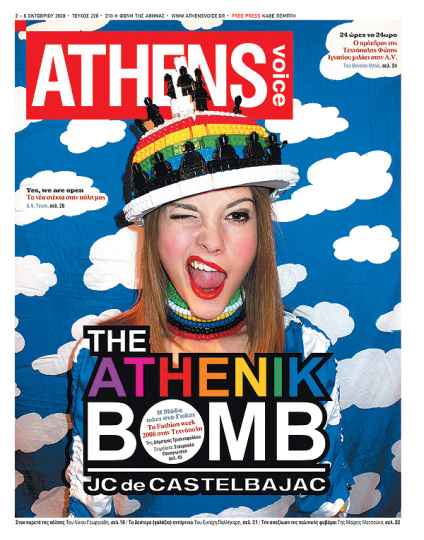 Το σχεδιάζει ο Jean-Charles de Castelbajac. Γεννημένος το 1949, γόνος αριστοκρατικής οικογένειας της Γαλλίας, ξεκίνησε από την ηλικία των 20 να σχεδιάζει πρωτότυπα ρούχα που έδιναν το στίγμα της ξεχωριστής υψηλής αισθητικής του. Έγινε ευρέως γνωστός με τις χρωματιστές δημιουργίες του για celebrities του ’70-’80, για το “teddy bear coat” που φόρεσε η Μαντόνα, αλλά και όταν του ζήτησε ο πάπας να σχεδιάσει τα ράσα για 9.000 κληρικούς. Επανήλθε στο προσκήνιο φέρνοντας μαζί του ένα μικρόκοσμο Castelbajac, που περιέχει παραγωγές σε μουσική, επιμέλεια εκθέσεων, προώθηση νέων σχεδιαστών και φυσικά σχεδιασμό ρούχων, αξεσουάρ και επίπλων. Ο Jean-Charles de Castelbajac το 2008 επιμελήθηκε την Ελληνική Εβδομάδα Μόδας, που πραγματοποιήθηκε στο «Τεχνόπολις», στο Γκάζι. Tο έργο του εξωφύλλου είναι ειδικά σχεδιασμένο για την A.V.