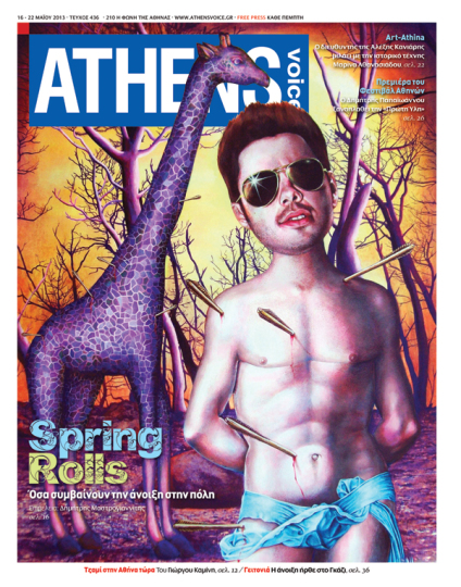 Αυτή την εβδομάδα το εξώφυλλο της Athens Voice σχεδιάζει o Νίκος Σίσκος. Γεννήθηκε και μεγάλωσε στον Βόλο. Το 2006 τελείωσε με άριστα τις σπουδές του στην Ανώτατη Σχολή Καλών Τεχνών της Αθήνας, στο εργαστήριο των Δημήτρη Σακελλίων και Γιώργου Καζάζη. Έχει παρουσιάσει πολλές ατομικές εκθέσεις, με τελευταία τον Μάρτιο του 2013 στην αίθουσα τέχνης Έκφραση-Γιάννα Γραμματοπούλου με τίτλο «MANimals». Επίσης, έχει πάρει μέρος σε πολλές ομαδικές. Από το 2002 έως το 2004 έλαβε υποτροφία από την ΑΣΚΤ, ενώ το 2007 έλαβε υποτροφία από την Ακαδημία Αθηνών. Έργα του βρίσκονται σε πολλές ιδιωτικές συλλογές. Συμμετέχει με έργα του στην Art Athina με την αίθουσα τέχνης Έκφραση-Γιάννα Γραμματοπούλου.
