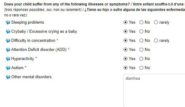 Για στατιστική αξιολόγηση της κατάστασης της υγείας των εντελώς μη εμβολιασμένων παιδιών σας ζητάμε να συμπληρώσετε την παρακάτω φόρμα. Τα δεδομένα θα δημοσιεύονται ανώνυμα και θα χειρίζονται με απόλυτη εμπιστευτικότητα. Τα αποτελέσματα μας βοηθούν να αποκτήσουμε ακριβείς πληροφορίες σχετικά με την υγεία των μη εμβολιασμένων παιδιών.