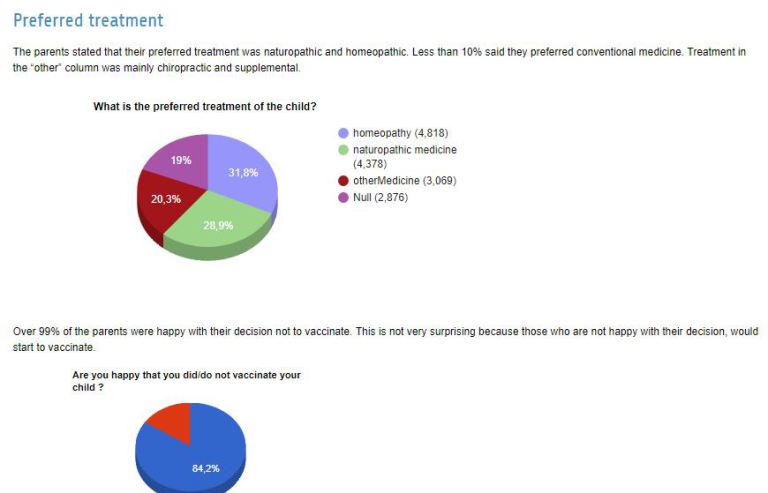 Και για να τελειώνουμε οριστικά με την «αξιοπιστία» της έρευνας, διαβάζοντας σχετικά με τη ταυτότητα των συμμετεχόντων, διαπιστώνουμε πως το 60% είναι οπαδοί της ομοιοπαθητικής και της νατουροθεραπευτικής, με το υπόλοιπο 39,3% να προτιμά άλλες μεθόδους (δεν διευκρινίζει), ή να μην απαντούν καθόλου. Επιπλέον, το 99% των συμμετεχόντων είναι αντιεμβολιαστές. Η προκατάληψη σε αυτούς που λαμβάνουν μέρος, είναι κάτι παραπάνω από εμφανής και μας οδηγεί στο ασφαλές συμπέρασμα πως η «έρευνα» είναι κυριολεκτικά για τα σκουπίδια.