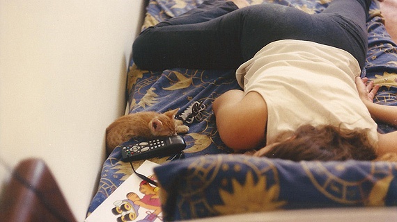Ευτυχώς, τις 3 πρώτες μέρες που την έφερα στο σπίτι, έλειπαν οι γονείς μου. Όταν γύρισαν, τους ανακοίνωσα «σας έχω μια δυσάρεστη έκπληξη». Δευτερόλεπτα μετά έσκασε μύτη η μικρή, τοσοδούλα, από το υπνοδωμάτιο. Η μαμά μου είπε: «Εννοείται, όχι!», αλλά της είπα ότι δεν με νοιάζει και κλειδώθηκα στο δωμάτιο με τη γάτα. Την έβγαζα μόνο για να κατουρήσει μέχρι να πειστεί η μαμά μου να την κρατήσουμε.