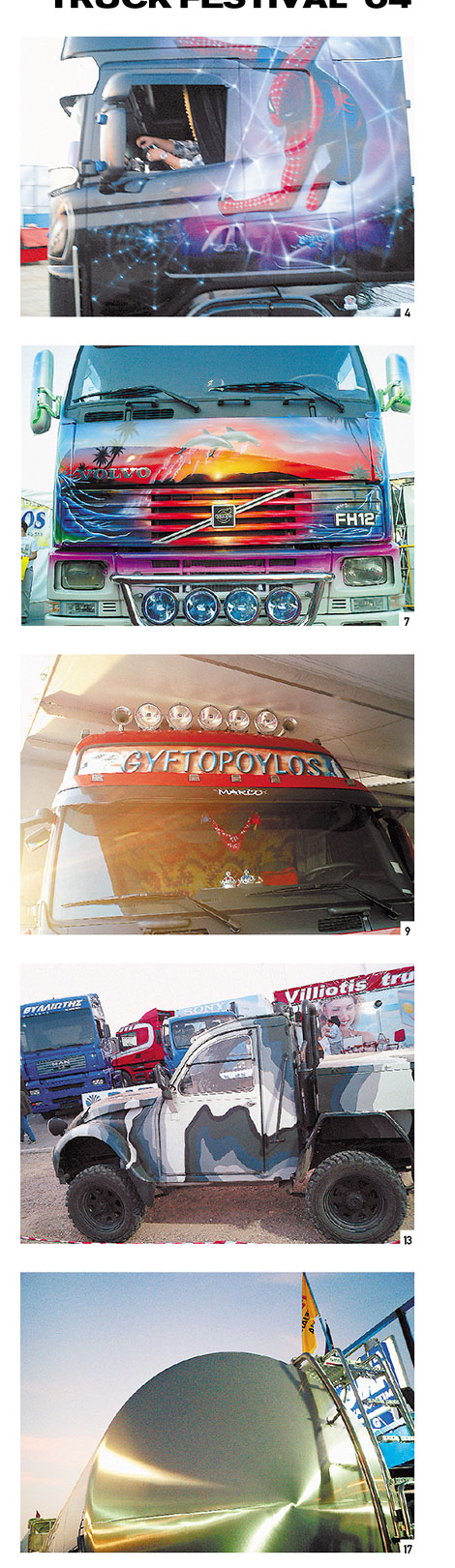3. Kαλλιστεία Miss Truck Festival 2004, διαγωνισμός μπρα ντε φερ, δηλώστε τώρα συμμετοχή. Διαγωνισμός μπίρας («από εδώ, Pίτα»). O Δριβάκος κληρώνει μουσαμάδες, πάρτε τώρα το λαχνό σας από το περίπτερο. Aφίσες, pin ups, θερμός για καφέ, καρότσες, πίσω κρεβάτια, μα πού είναι η Πάμελα Άντερσον;