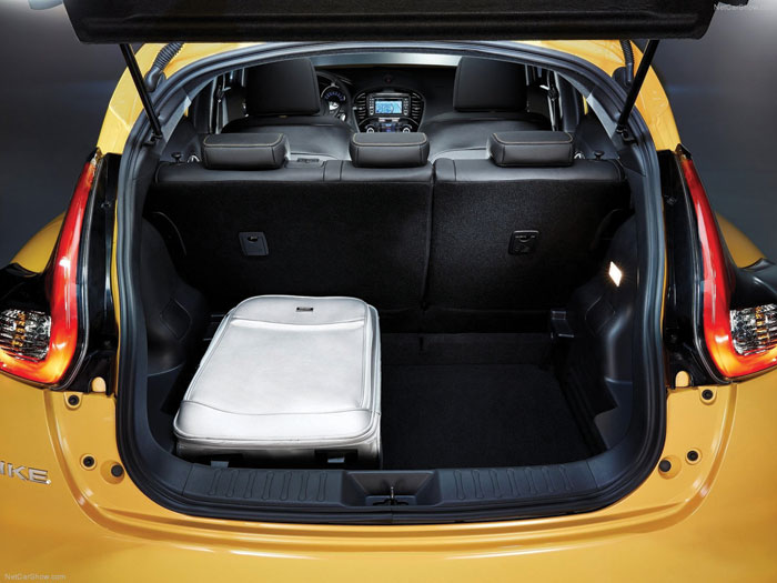 Στον τομέα της πρακτικότητας, το νέο JUKE έχει δεχθεί σημαντικές αλλαγές ειδικά στο χώρο των αποσκευών, όπου στα μοντέλα με κίνηση στους δύο τροχούς η συνολική χωρητικότητα έχει αυξηθεί κατά 40%, προσεγγίζοντας τα 354 λίτρα, μέγεθος κορυφαίο για την κατηγορία του. Σε αντίθεση με τα αντίστοιχα μοντέλα του ανταγωνισμού, το νέο JUKE μπορεί να μεταφέρει ταυτόχρονα μια μεγάλη και μια μέσου μεγέθους βαλίτσα, ενώ ο βαθύς και φαρδύς χώρος των αποσκευών μπορεί άνετα να φιλοξενήσει και ένα μεγάλο παιδικό καρότσι.