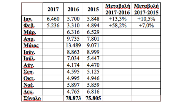 Σε σχέση με τον Φεβρουάριο του 2015, μήνα κατά τον οποίο δεν είχαν ισχύσει οι ακραίες συνθήκες του 2016, η αγορά του Φεβρουαρίου 2017 κατέγραψε άνοδο +7,0%. Συνολικά, σε σχέση με το πρώτο δίμηνο του 2015, στο διάστημα Ιανουαρίου-Φεβρουαρίου 2017 οι ταξινομήσεις καινούργιων επιβατικών είναι αυξημένες κατά +8,9%.