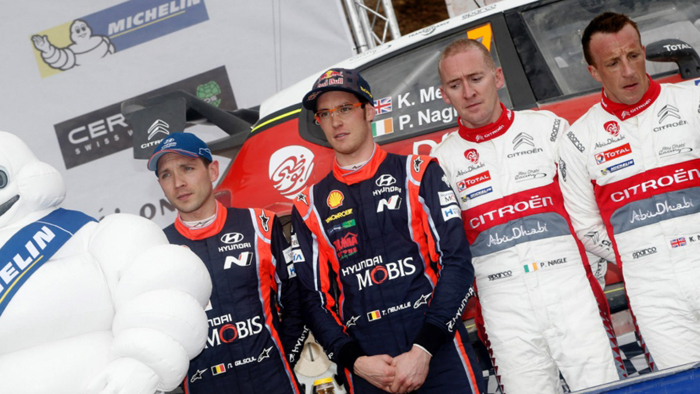 Η ανέκφραστη στάση του πληρώματος στο βάθρο (οι δυο δεξιά, ο συνοδηγός Paul Nagle και ο οδηγός Kris Meeke) στην τελευταία φωτό, είναι χαρακτηριστική του σοκ που βίωσαν…