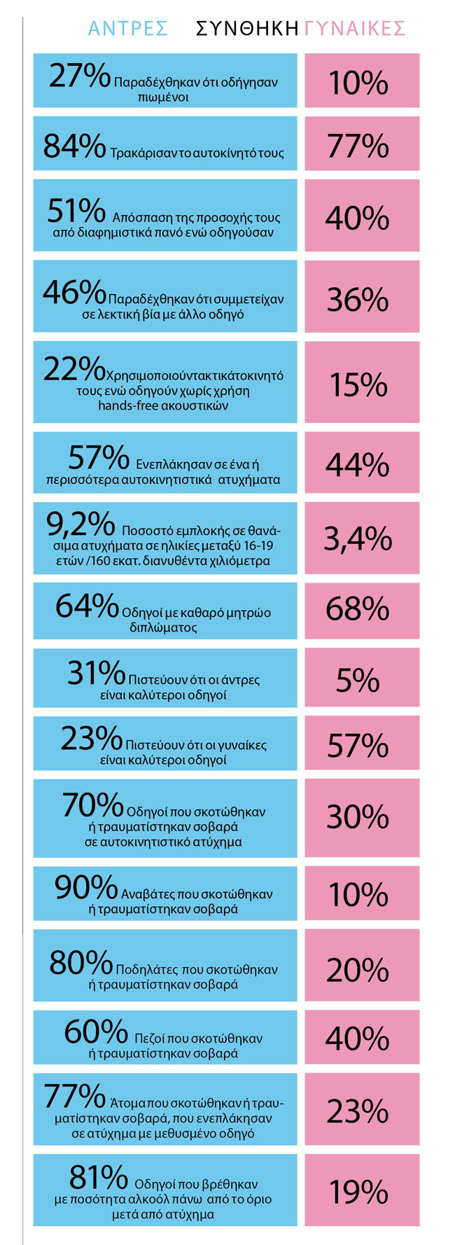 Άλλωστε είναι τελείως διαφορετικό να γίνονται απονομές για το ποιος είναι πιο ασφαλής οδηγός στα καφέ και στις μπαλκονάτες συζητήσεις, από το να βγαίνει ένα συμπέρασμα μέσα από έρευνες.