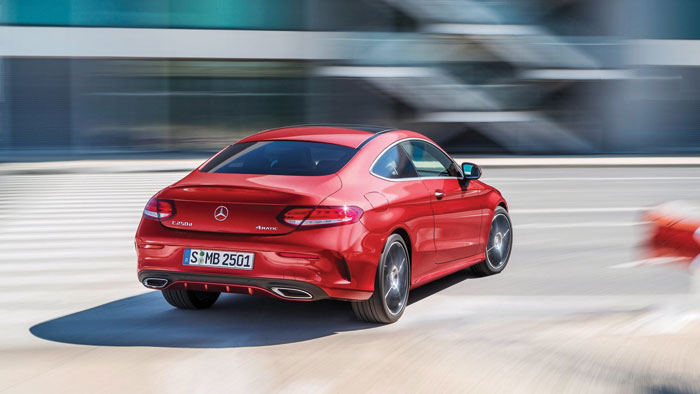 Ταυτόχρονα, αυτή η καινοτόμος τεχνολογία φωτισμού αυξάνει την αξία αναγνώρισης της νέας C-Class Coupé. Τέσσερις οριζόντιες λωρίδες LED δημιουργούν ένα εντυπωσιακό, διακριτικό μοτίβο φωτός την ημέρα και τη νύχτα. Το εντυπωσιακό αποτέλεσμα του επανασχεδιασμένου πίσω μέρους –ανάλογα με την έκδοση του κινητήρα– εξελίσσεται ακόμη περισσότερο από το σύστημα εξάτμισης με τις δύο απολήξεις που είναι ενσωματωμένες στον πίσω προφυλακτήρα.