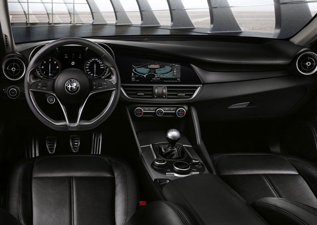 > Το εσωτερικό της Giulia επικεντρώνεται γύρω από τον οδηγό και τις κινήσεις του, φιλοξενεί με άνεση τέσσερις ενήλικες ακόμα και για μεγαλα ταξίδια ενώ το διαμέρισμα των αποσκευών διαθέτει προς φόρτωση 480 λίτρα.