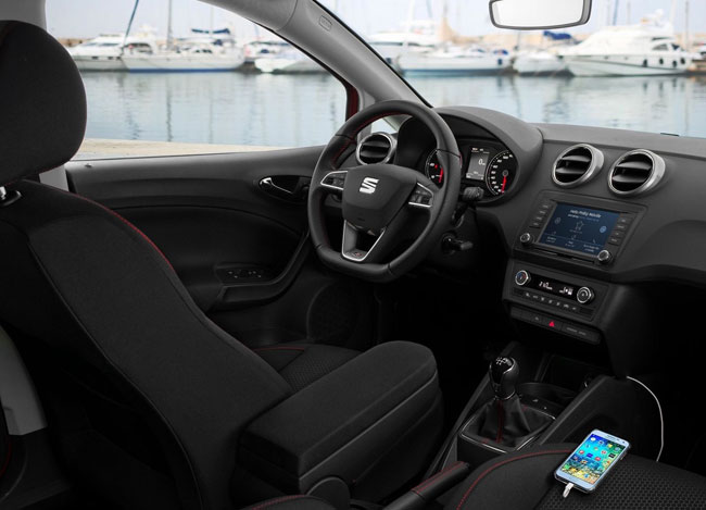 > Με πινελιές ανανέωσης (ήτοι περισσότερες επιλογές αναφορικά µε τις αποχρώσεις του εσωτερικού και τον σχεδιασµό της ταπετσαρίας, αλλά και περεταίρω ποιότητα στην ήδη προσεγνένη κατασκευή στον τομέα συναρμογής, φινιρίσματος και υλικών, το Ibiza κλείνει το μάτι στο νέο ηλικιακά αγοραστικό κοινό. Για τον λόγο αυτό οι Ισπανοί το εφοδίασαν µε εξοπλισµό που να καλύπτει με το παραπάνω τις απαιτήσεις και τις ανάγκες της καθηµερινότητας. Συνέπεια αυτού, ήταν να συναντάμε στο 1000-άρι Ibiza την τεχνολογία infotainment (σύστημα ενημέρωσης και διασκέδασης) «Mirror Link», πλήρη δυνατότητα συνδεσιµότητας, όπως και την εφαρµογή «Seat Connect App».