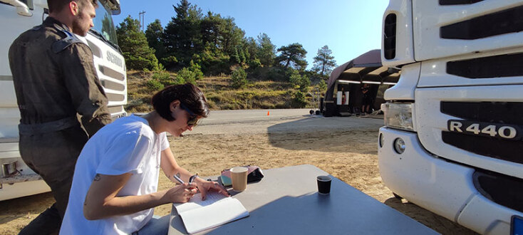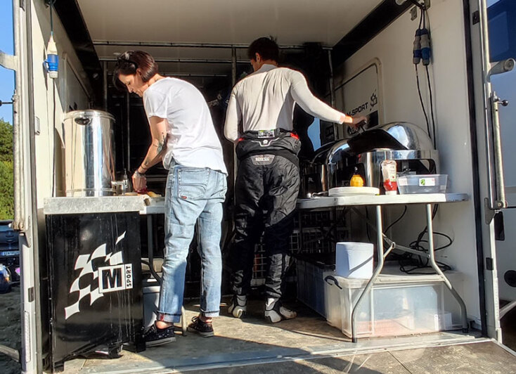 Κατά τη διάρκεια της κουβέντας μας πέρασε δίπλα μας ένα από τα μέλη της ομάδας και μπήκε μέσα στο φορτηγάκι με το φαγητό. Πήρε κάτι να φάει και επιστρέφοντας έκανε πλάκα στον John ότι ο μάγειρας είχε κάψει πάλι τα κρουασανάκια. «Είναι το inside joke μας» μάς εξήγησε και γέλασε. «Τον κοροϊδεύουμε ότι ενώ είναι τόσο καλός, δεν καταφέρνει ποτέ να τα βγάλει πριν καούν. Θα φταίει ο φούρνος…».
