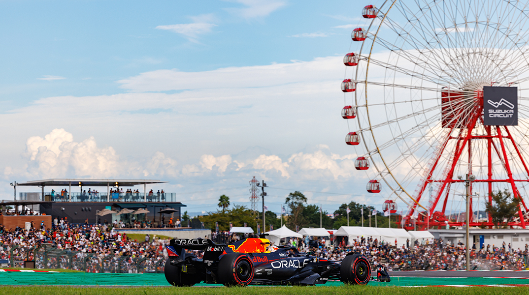 Formula 1: Ο Αγώνας στη Suzuka International Racing Course στην Ιαπωνία, η νίκη του Mαξ Φερστάπεν και το λογότυπο της Red Bull στα αγωνιστικά αυτοκίνητα