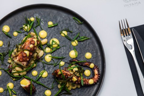 Τέλη Ιουλίου και η Αθήνα σιγοψήνεται. Στη Μύκονο πάλι, ένα ελαφρύ μελτεμάκι ταρακουνάει το αεροπλάνο καθώς προσγειώνεται. Λίγα λεπτά και αρκετά ασβεστωμένα στενάκια αργότερα το Inyama ξεπροβάλλει σαν αυγουστιάτικο φεγγάρι στη μέση της πλατείας Αγίας Μονής. Γήινες αποχρώσεις, αναπαυτικοί καναπέδες και ψάθινα φωτιστικά που λικνίζονται απαλά στο μυκονιάτικο αεράκι, συνθέτουν την ατμόσφαιρα του εστιατορίου που ήρθε για να ταράξει τα -έτσι κι αλλιώς ανήσυχα-γαστρονομικά νερά του νησιού.
