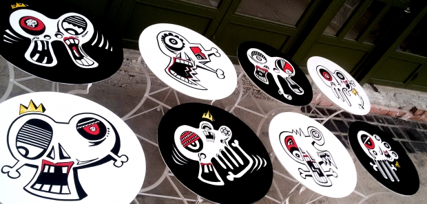 Μοιάζει με μπαρ. Ένας καλοφωτισμένος επιτοίχιος συνωστισμός νεκροκεφαλών μου τράβηξε το μάτι. Το μέρος είναι artsy ως τα μπούνια. Θυμίζει Kreuzberg αλλά όχι ακριβώς, θυμίζει Camden; Αρκετά λιγότερο. Θυμίζει νεοϋορκέζικο Lower East Side; Ίσως. H ελληνική εκδοχή του κοσμοπολίτικου και νεανικού, μου φαίνεται πως είναι η σωστή απάντηση.