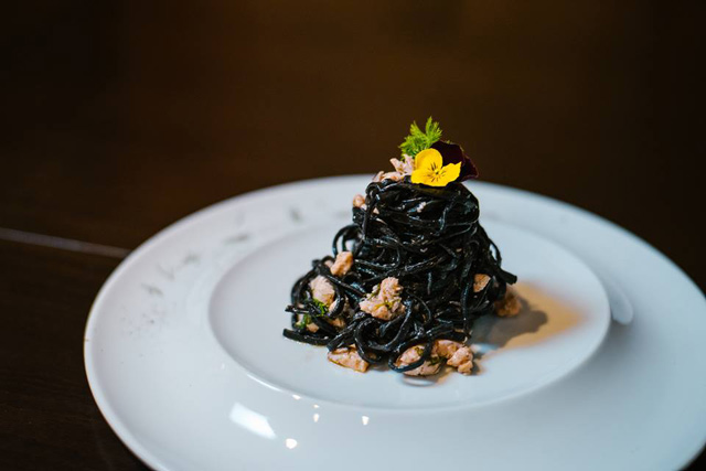 Το μενού, πλούσιο, χορταστικό, τίμιο. Σχεδόν όλες οι πρώτες ύλες είναι βιολογικές, τα ζυμαρικά φρέσκα και χειροποίητα, τα κρέατα νωπά, τα γλυκά φτιάχνονται εδώ κάθε μέρα (για του λόγου το αληθές, τη στιγμή που κρυφοκοίταξα από την κουζίνα, ψήνονταν στο φούρνο δύο κέικ σοκολάτας). Στον κατάλογο του φαγητού, την παράσταση κλέβουν το λαυράκι με σταμναγκάθι, αρωματισμένο με τζίντζερ και λάιμ και το Rib Eye με χοντροσπασμένες πατάτες baby, αναμιγμένες με σπανάκι και σάλτσα από μαύρο καπνιστό τσάι. Αυτό ισχυρίζεται τουλάχιστον ο Νίκος, όμως εγώ πρόσεξα κι άλλα διαμαντάκια. Όπως την Picanha από Black Angus με baby πατάτες και γλυκιά σάλτσα κρασιού από δεντρολίβανο. Ή το ωραία χυλωμένο ριζότο μανιταριών. Τελικά διάλεξα τα μαύρα ταλιολίνι με σολομό, λεμόνι, άνηθο και μαστίχα Χίου. Μαύρα από το μελάνι σουπιάς, έκαναν ωραία αντίθεση με τα βρώσιμα κατακίτρινα άνθη και την ατίθαση κορφή του άνηθου. Και μετά η πρώτη μπουκιά, η οξύτητα του λεμονιού, η δροσιά του άνηθου, η τρυφερότητα του σολομού. Αξίζει να αφιερώσετε ένα λεπτό για να αφομοιώσετε τη φρεσκάδα των υλικών. Ήταν αριστουργηματικό.