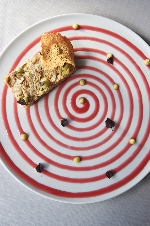 Μην σας τα πολυλέω, και τσιπούρα με τραχανότο λαχανικών δοκιμάσαμε και αρνίσιο καρέ με σταρότο ντομάτας και χαλάζι φέτας, ναι, το ’χουν οι νέοι σεφ με τις περιγραφές (που ίσως σε μερικούς να μας δίνουν στα νεύρα), τούτος εδώ όμως ό,τι και να μας έβγαλε και με όποια ονομασία, μας ξανασύστησε, να το πω έτσι, σε γεύσεις πολύ γνώριμες έστω κι αν φορούσαν τόσο λουσάτο και μοντέρνο «ρούχο». Μιλώντας (και καπνίζοντας) στο όμορφο μπαρ του Όμικρον μού λέει πως λατρεύει τον πλούτο της ελληνικής κουζίνας και θεωρεί σχεδόν ιεροσυλία να «παραπειράζει» τους θρύλους της, αυτό όμως δεν τον εμποδίζει να φτιάχνει το «Σαν παστίτσιο» του σαν μια κροκέτα από μακαρόνια εξωτερικά που εντός τους κρύβουν κιμά και μπεσαμέλ, ούτε να πειραματίζεται με ένα αλμυρό παγωτό... έλατο που θέλει να σετάρει μ’ ένα καρπάτσιο μοσχαριού.