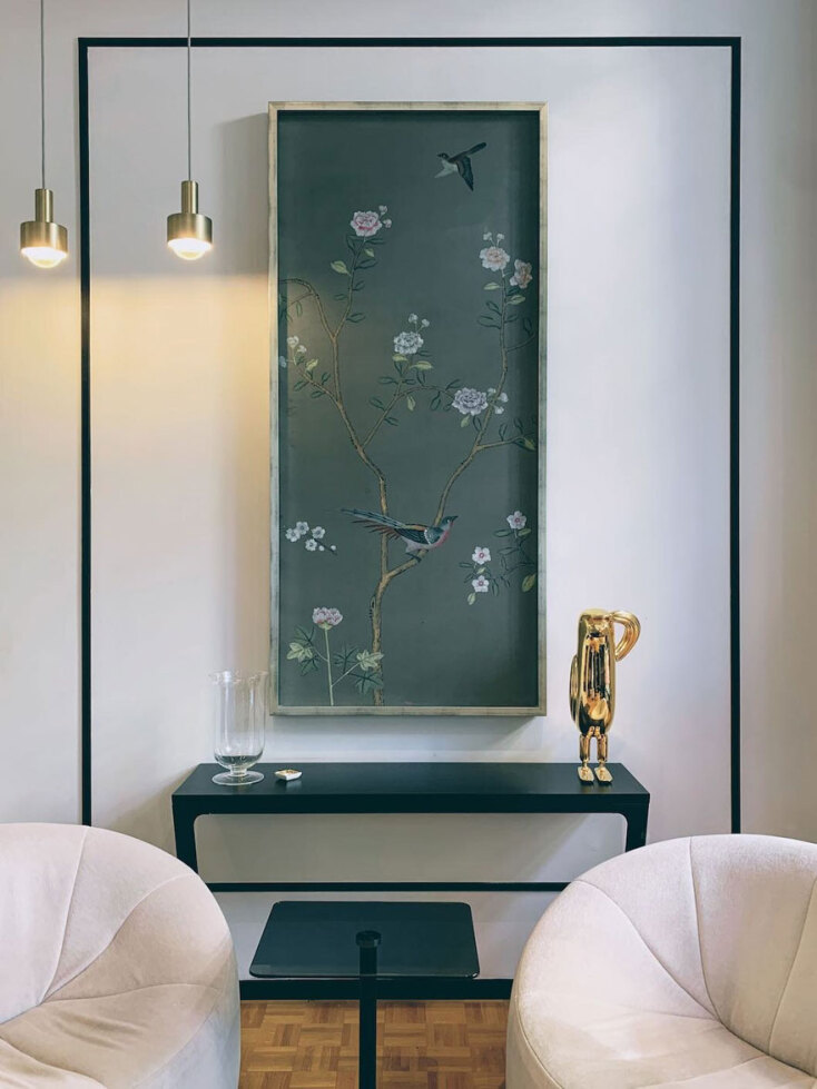 Για την ακρίβεια, όπως έμαθα λίγο αργότερα, αυτό ακριβώς είχε στο μυαλό της η Μελίσσα Παπαγιαννοπούλου όταν το έφτιαχνε, ένα καθιστικό που θα τους χωράει όλους, συμπεριλαμβανομένων και των τετράποδων φίλων. Και το έφτιαξε με έμπνευση και φαντασία. Στοιχεία ρετρό αλλά και μοντέρνα που μπερδεύονται μεταξύ τους χωρίς παραφωνίες, ξεχωριστά διακοσμητικά αντικείμενα και αναπαυτικά έπιπλα συνθέτουν έναν χώρο φωτεινό, λιτό και οικείο που αποπνέει γοητεία και υψηλή αισθητική χωρίς να είναι επιτηδευμένος. Μια ασπρόμαυρη ριγέ τέντα αγκαλιάζει την πρόσοψη και δείχνει την είσοδο.