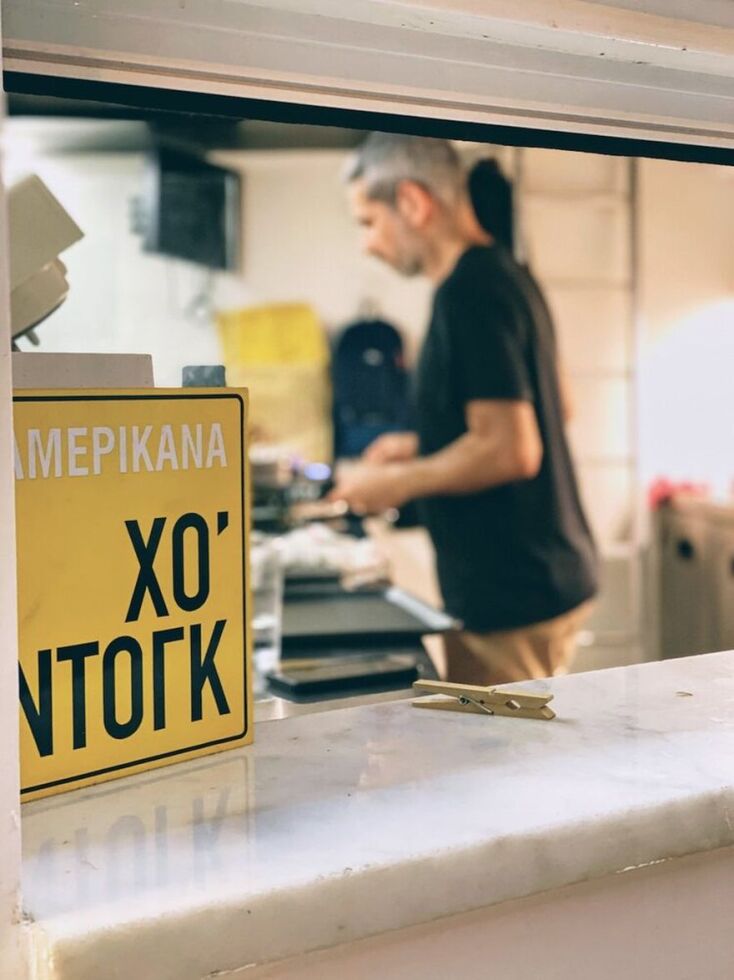 Χώρος μικρός, λευκή μπογιά στον τοίχο και γλόμποι -γιρλάντα που κρέμονται πάνω από την αυλή-πεζοδρόμιο. Ένα ευχάριστο contrast στο αθηναϊκό τοπίο, που θα μπορούσε να ταξιδέψει τη φαντασία σου σε περασμένες δεκαετίες, σε στέκια καλοκαιρινά μιας ξεχασμένης ελληνικής επαρχίας ή σε μοναχικά ντάινερς πάνω σε ατελείωτους αμερικανικούς αυτοκινητοδρόμους. Η τολμηρή επιγραφή και οι μίνιμαλ καθαρές γραμμές στο design σε επαναφέρουν στο σήμερα της πόλης σου, οι γεύσεις πάλι, στο πολλά υποσχόμενο μέλλον του street food.