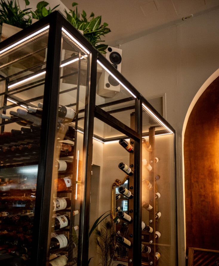 Ιδιαίτερο στοιχείο στον χώρο είναι και το κελάρι που έστησαν με τα χέρια τους, ένας γυάλινος θάλαμος που φιλοξενεί 110 ετικέτες κρασιών από τον ελληνικό και τον διεθνή αμπελώνα. Τα signature cocktails εμπνέονται το όνομά τους από το αρτικόλεξο της Αγάπης, για παράδειγμα στο γράμμα Α θα βρεις το «Αίσθημα», μια τεκίλα με πιπεριά Φλωρίνης και μαύρο πιπέρι, στο Γ, αντιστοιχεί το κοκτέιλ «Γοητεία», με μαστίχα, λικέρ πορτοκάλι και φράουλες. Στο Π θα βρεις το «Πάθος» με ρούμι, μανταρίνο και κίτρο, και ούτω κάθε εξής.