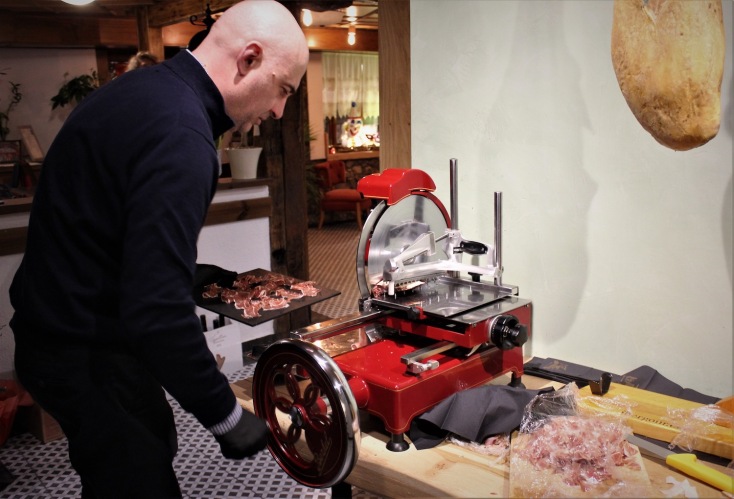 Τώρα, αν θυμάσαι πως λίγο παραπάνω χρησιμοποίησα τον όρο κουζίνα κοσμοπολίτικη και παιχνιδιάρα, ήρθε η ώρα να την αναλύσω περισσότερο. Σε μια πόλη όπου ένεκα των φίνων καπνών της άκμασε το εμπόριο σε ύψη τόσο δυσθεώρητα, ώστε στα τέλη του 19ου και στις αρχές του 20ού να υπάρχει εδώ μέγας πλούτος, χλιδή, μοδίστρες διεθνούς μόδας και προξενεία από πολλές ευρωπαϊκές χώρες, λογικό δεν είναι να ακμάσει και η διεθνής κουζίνα; Αυτό επαναφέρουν στην Παλαιά Πόλη, ο Νίκος και η Ελένη, την Ιταλία, φερειπείν, μέσω ενός απίστευτου προσούτο, που φέρνουν από την Πάρμα, και την Ισπανία με ένα καταπληκτικό χαμόν σεράνο. Αμφότερα τα σερβίρουν λεπτοκομμένα και λαχταριστά, εις δόξαν των παλιών εποχών, τότε που ως και η Σάρα Μπερνάρ σταμάτησε εδώ με τον θίασό της, καλεσμένη των καπνέμπορων που δεν τους έφτανε να την βλέπουν μόνο στο Παρίσι.